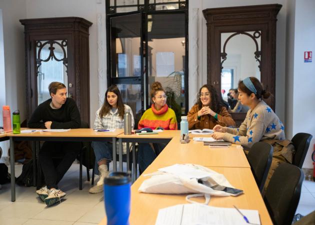 W historycznym budynku prowadzimy zajęcia komunikacyjne w małych grupach, dostosowane do indywidualnych potrzeb. Nasza społeczność, ciepła atmosfera i wsparcie pomagają osiągnąć pełen potencjał w języku francuskim.